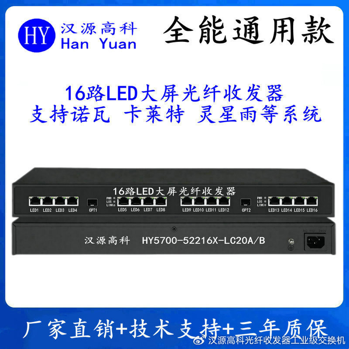 在体育赛事直播中,汉源高科16路LED大屏光纤收发器通过以下关键机制确保信号的稳定传输:
