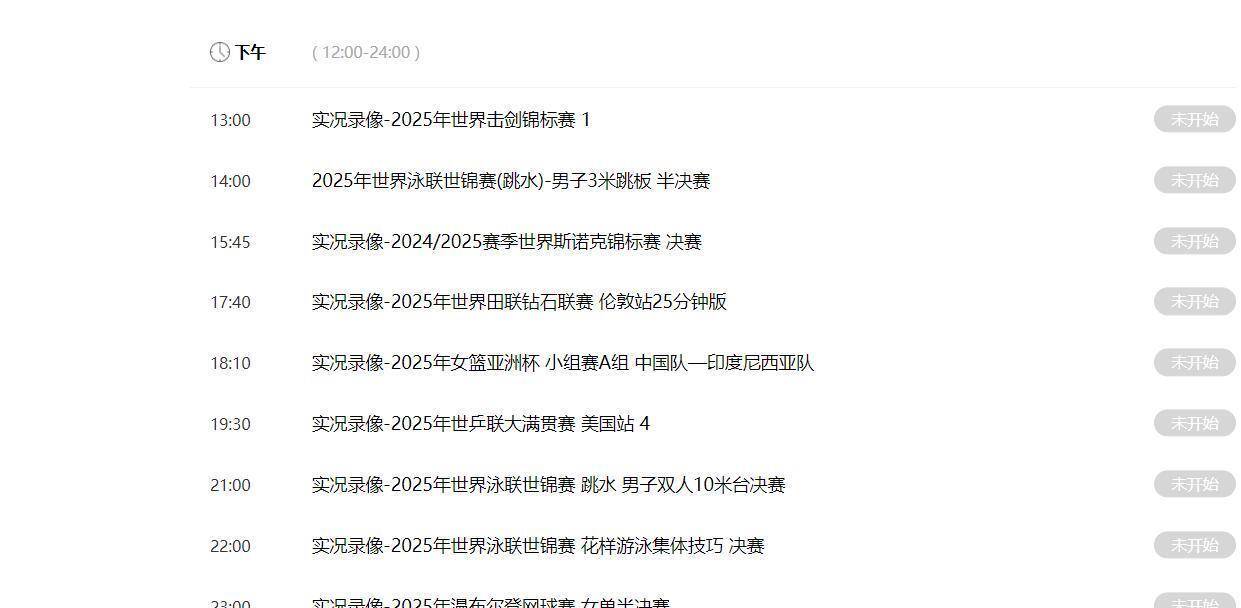 CCTV5主频道切换出游泳世锦赛直播倒计时,背景音是跳水队训练水声。