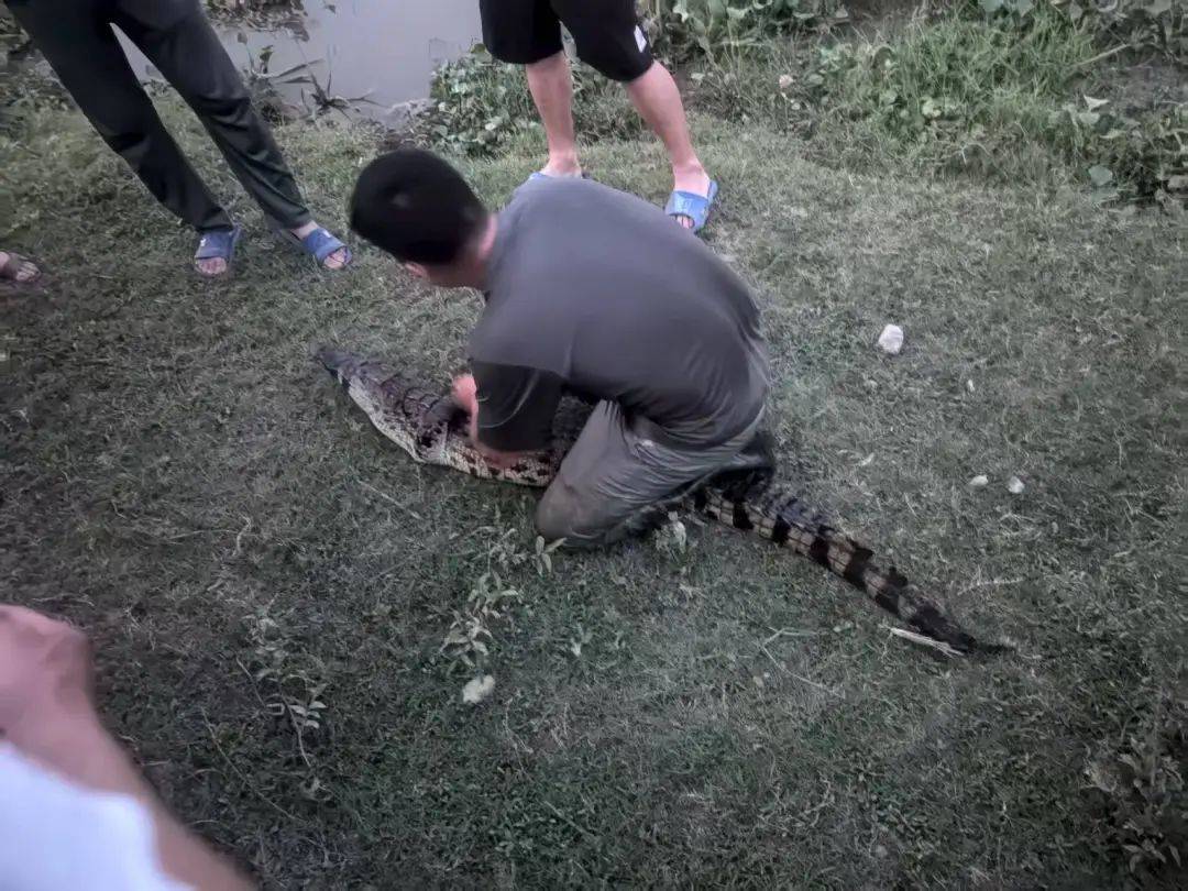 武汉再现一场“捕鳄”行动。8月29日,记者从武汉渔政了解到,从8月23日至28日期间, 执法人员总共在武汉市后官湖区域抓捕了5条杂交鳄鱼。