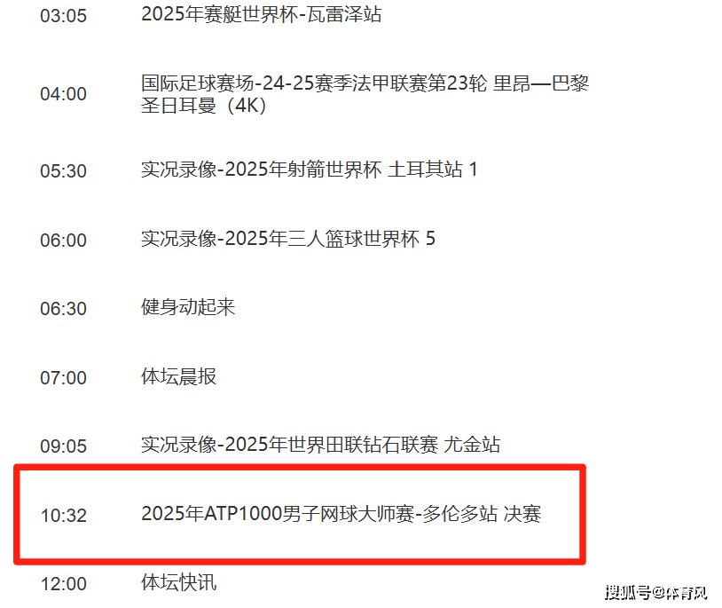 以下是CCTV5和CCTV5+两个频道将直播网球大师赛多伦多站决赛重要赛事,敬请期待!!