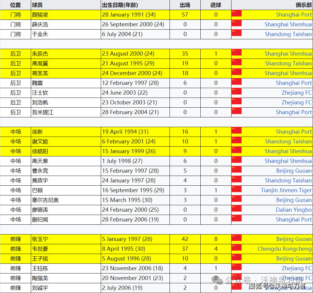 国足大名单: