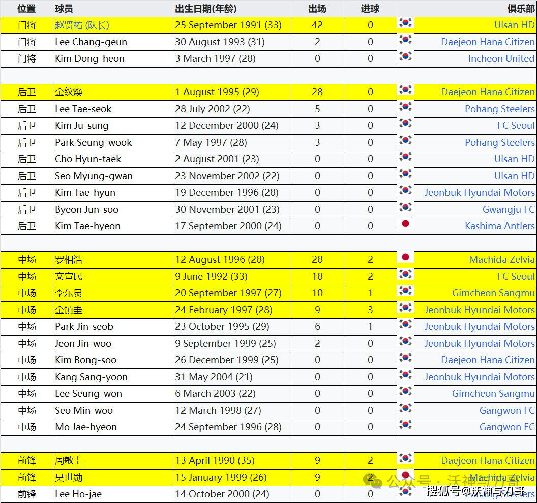 韩国大名单: