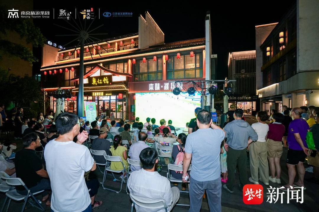 扬子晚报网8月17日讯(记者 徐昇)8月17日晚,“苏超”第九轮南京队对阵盐城队,南京奥体现场气氛热烈。与现场氛围同步的,还有熙南里街区的“第二现场”——市民和游客围坐在户外直播点,共享精彩赛事。与此同时,熙南里的特色市集、夜间演艺、非遗体验、商户促销等活动也正如火如荼开展中。