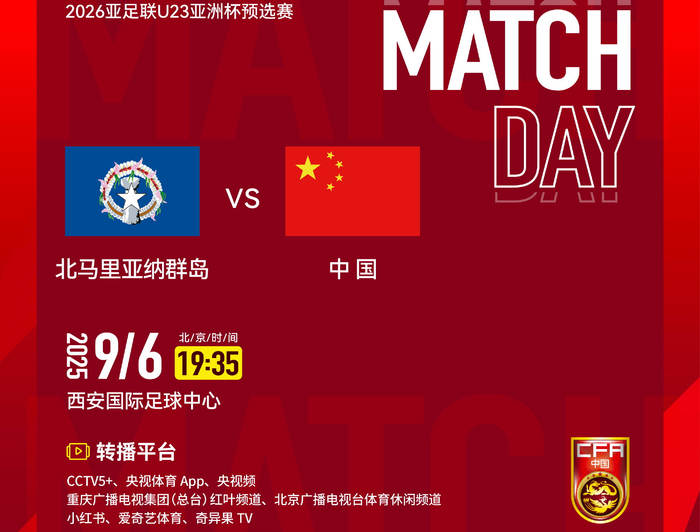 北京时间9月6日晚(今晚)19时35分,2026年亚足联U23亚洲杯小组赛D组第2轮,坐拥主场之利的中国U-22国家男子足球队再次亮相,对阵同为鱼腩球队的北马里亚纳群岛U23男足,比赛依然在西安国际足球中心进行,虽然是一座专业足球场,但草皮质量备受诟病。