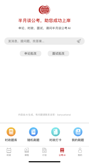 半月谈AI申论批改支持两次免费使用(半月谈APP领取)。