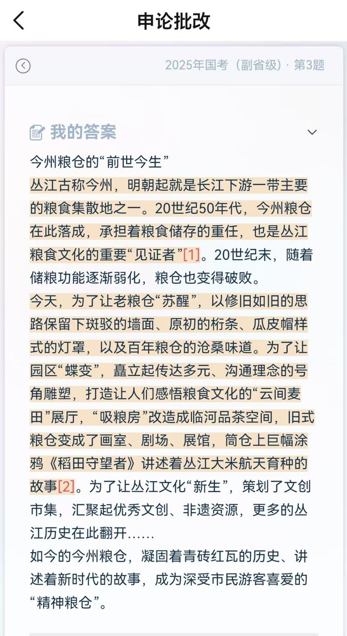 与一些普通的智能批改不同,它的批改逻辑并非单纯机械的字词匹配。虽然同样采用踩点给分的基本模式,但在识别关键词时,具备更强的灵活性和精准性。考生可以充分利用它的优势,查漏补缺,提升申论作答能力。