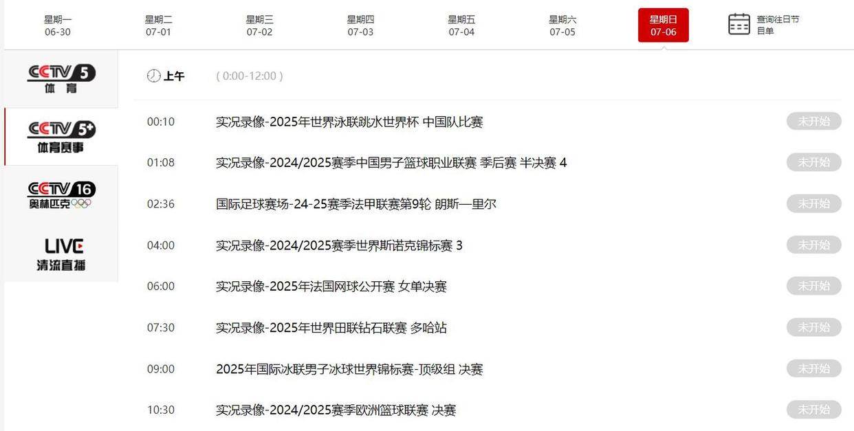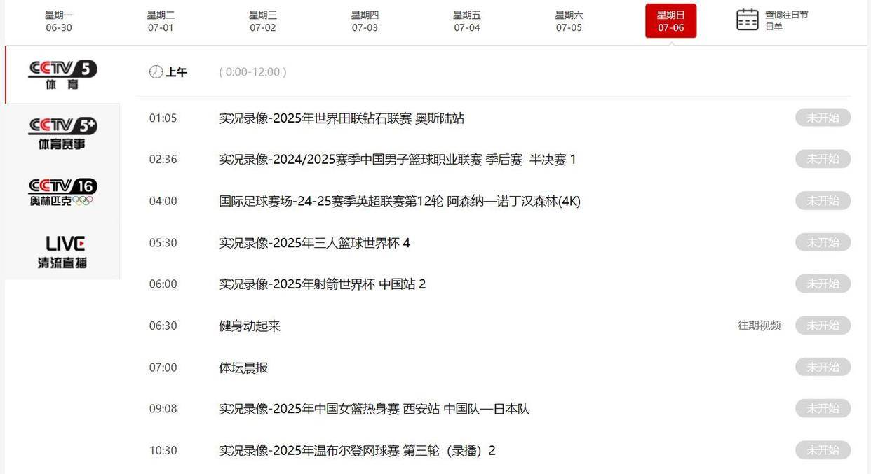 2021年7月6日cctv5节目表-7月5日中央一台节目表