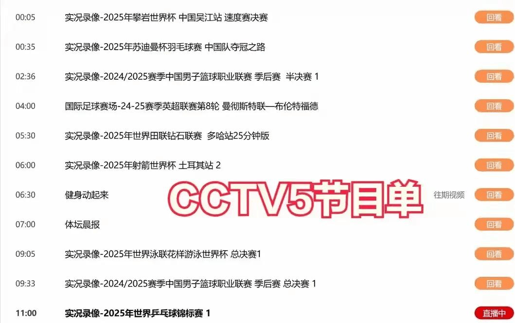 中央5今日直播电视节目明天节目表-央视5套今日