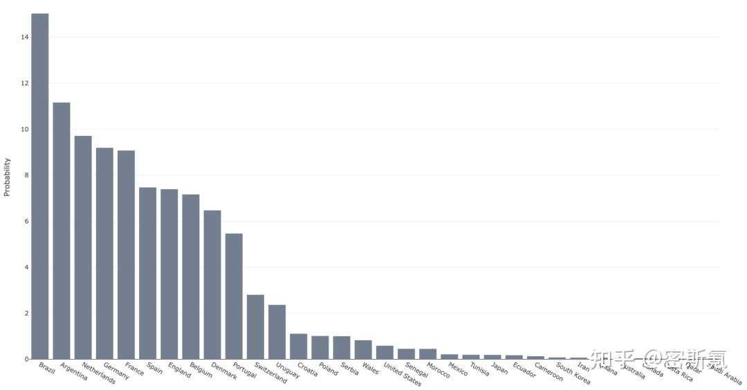图|参加本次世界杯的各个国家队获得冠军的概率。